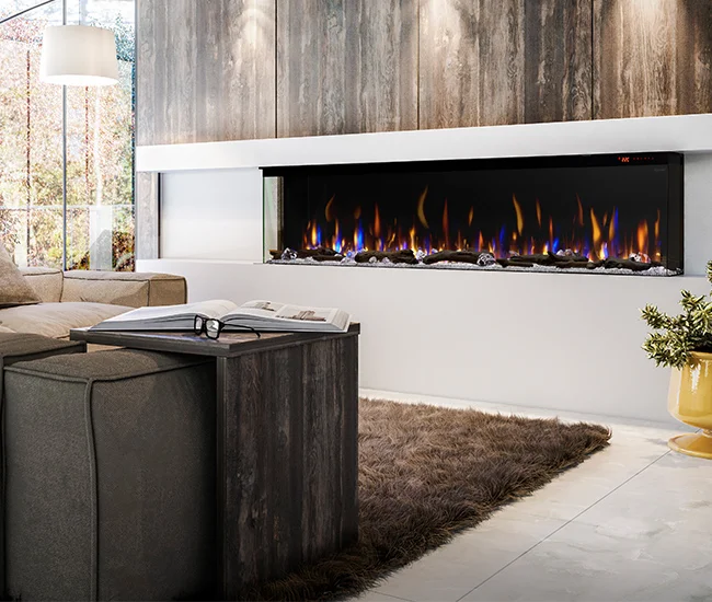 Make a bold statement with the Ignite Bold Linear Electric Fireplace. This modern, built-in fireplace is top-of-the-line in the Dimplex Ignite series. Its 16in depth allows for larger, lifelike driftwood and dazzling flames. Ignite Bold is the ultimate in design versatility with 3 ways to install this impressive fireplace. Dare to be Bold.
