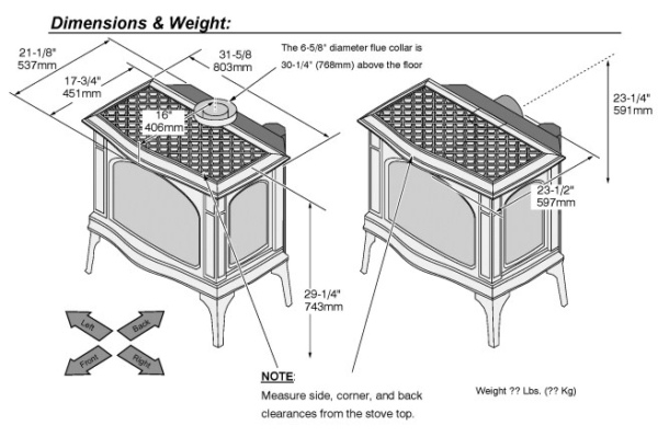 - Glass Viewing Area: Ceramic Glass, Front: 22-1/2″W x 13-5/8″ H , Side: 8-7/8″ W x 12-3/4″ H, 521.9 Sq. In.