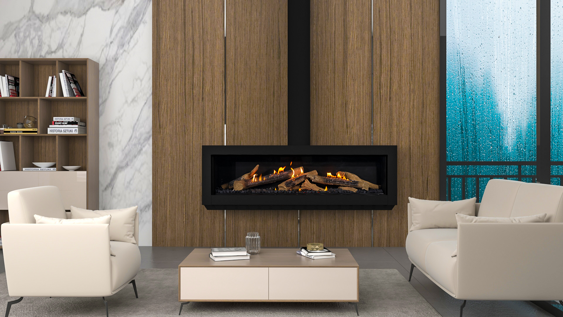 Ortal has introduced The Wilderness Collection, with an ultra-realistic gas fireplace that is unlike anything in the industry. With its exclusive, patent-pending Firelog Technology, Ortal makes it possible to enjoy the experience of a wood-burning fire with a taller more realistic flame, but with all the innovations and options found in its other luxury gas fireplaces. Available with Driftwood Logs. Patent Pending 62/797.279.